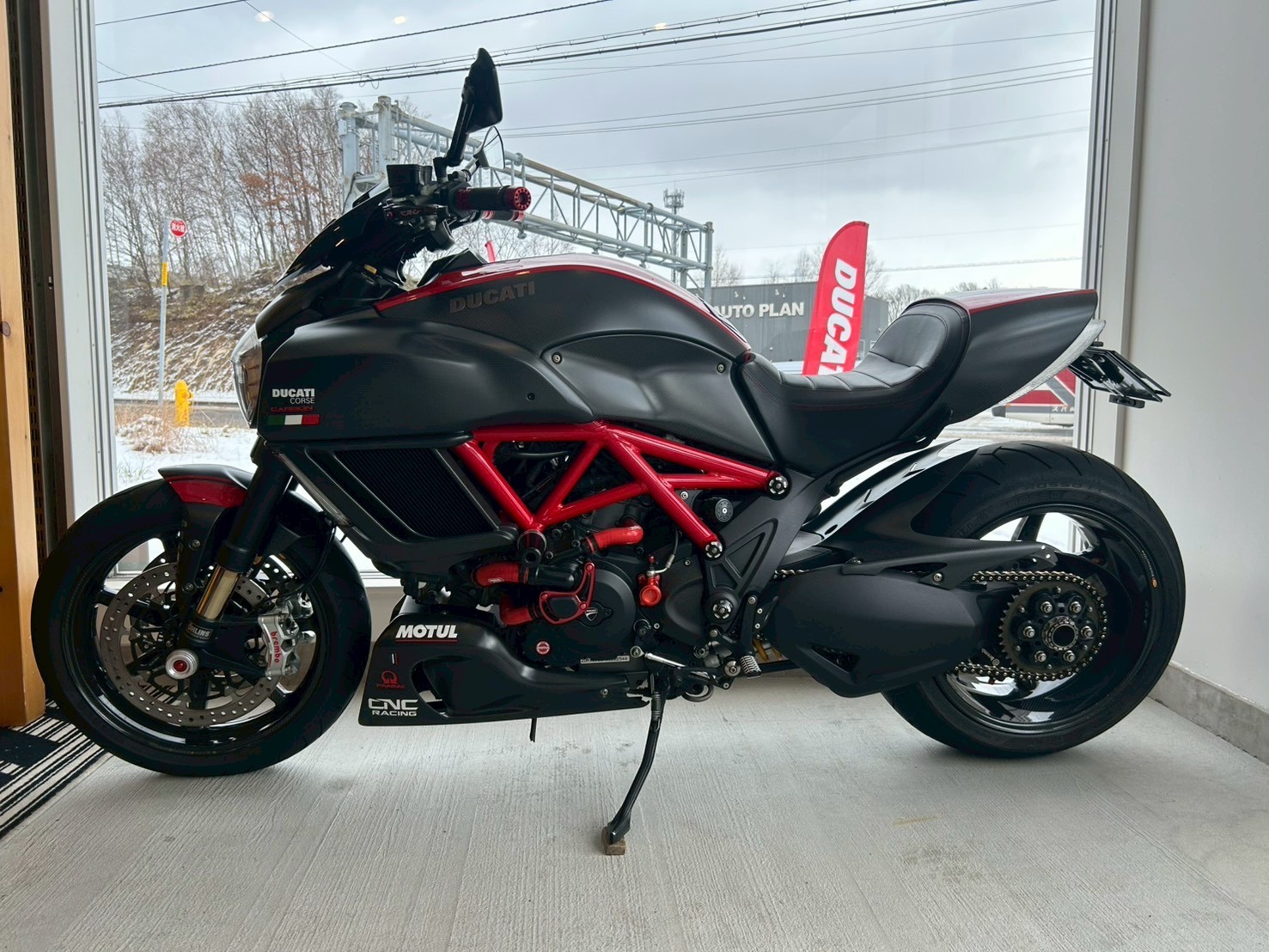 カーボンホイールなどカスタム多数車です。 *保険料・税金(消費税を除く)・登録料を伴う費用などは含まれておりません。 只今、ドゥカティ札幌店にて展示中です。